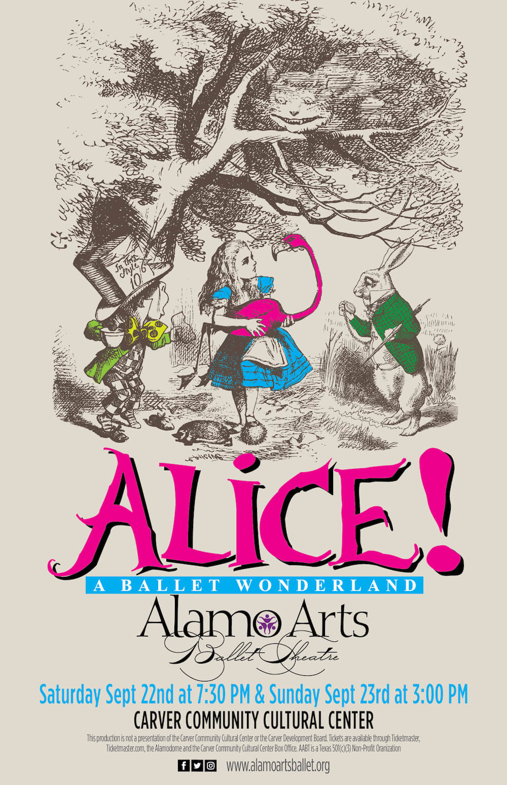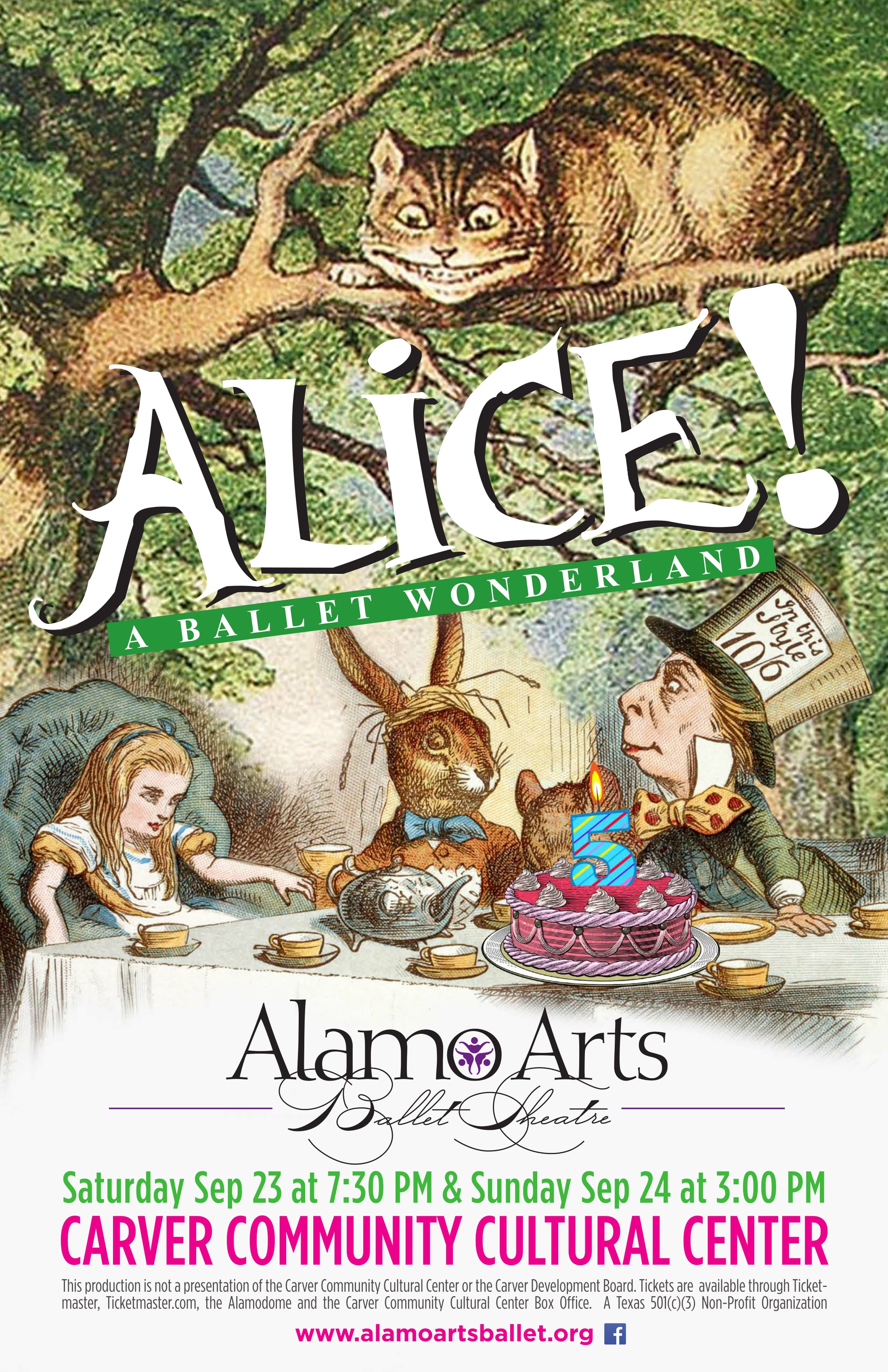 Alamo Arts Ballet Theatre is proud to present the Sixth performance of our full-length story ballet "Alice! A Ballet Wonderland," on September 22rd and 23th at the Carver Community Cultural Center.