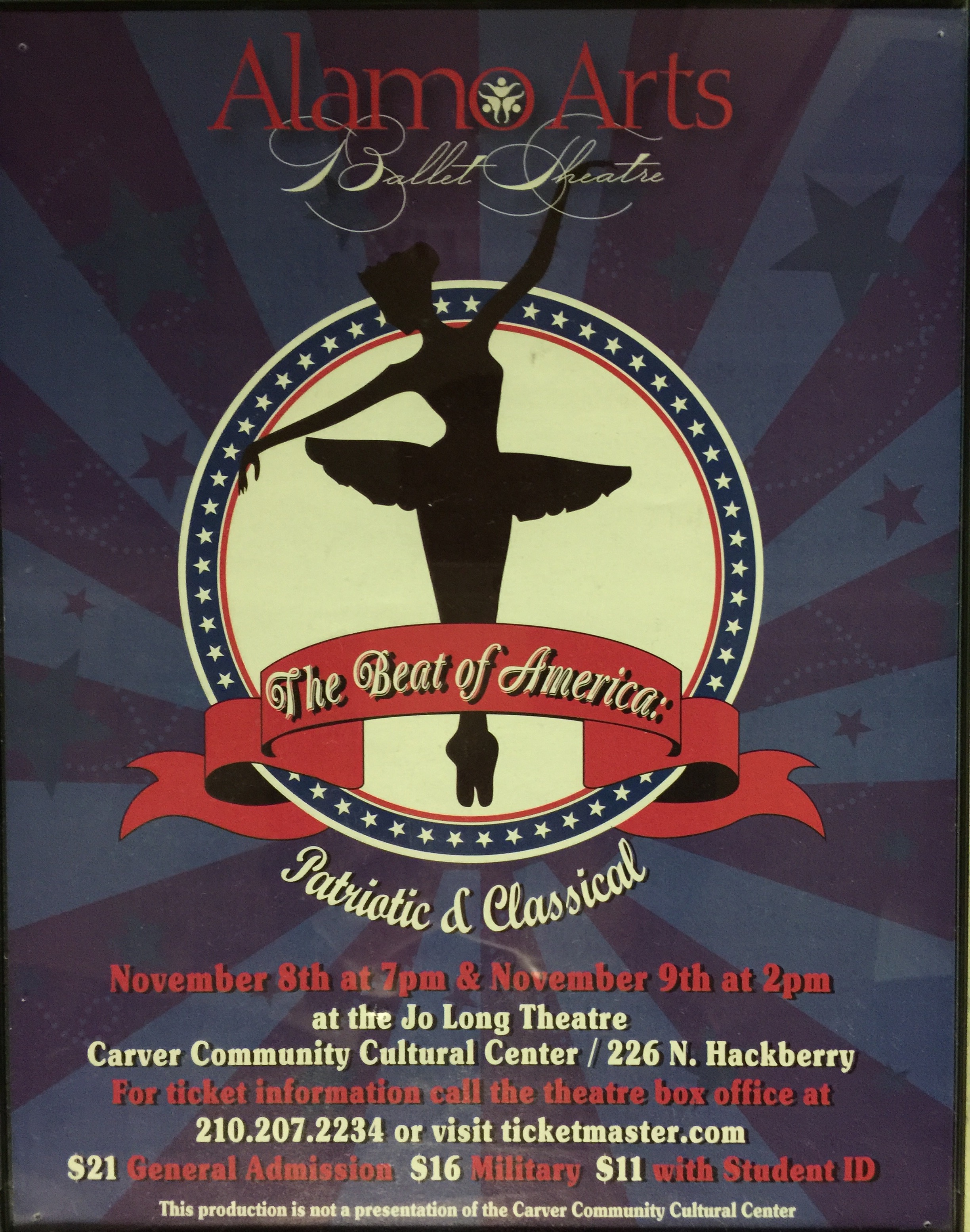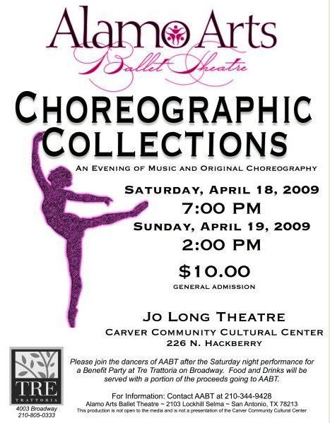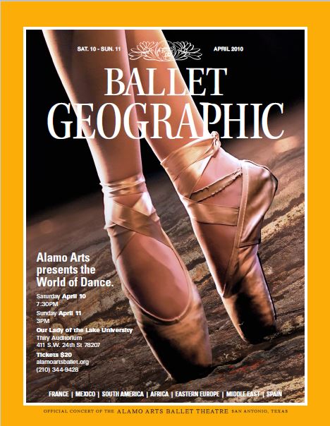 During the spring of 2010, Alamo Arts Ballet Theatre presented Ballet Geographic. A collaborative performance of ballet and other dance forms inspired by music from around the world, this performance included culturally diverse musical selections and beautiful ballet to match.